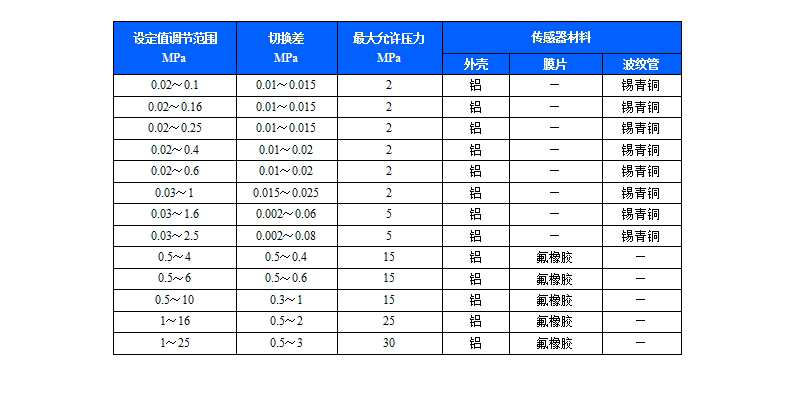 TLD-PC壓力控制器是采用膜片式傳感器,為雙刀雙擲壓力控制器,兩組微動開關(guān)的切換值可分別設(shè)定;可用于空氣、氣體、水、蒸汽、制冷劑、油等液體介質(zhì)。控制器的設(shè)定值可調(diào),調(diào)節(jié)范圍0.01~25MPa。