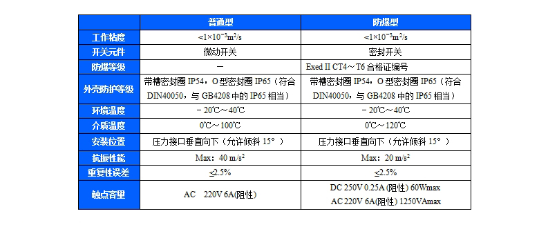 規(guī)格:切換差不可調(diào)(小切換差)